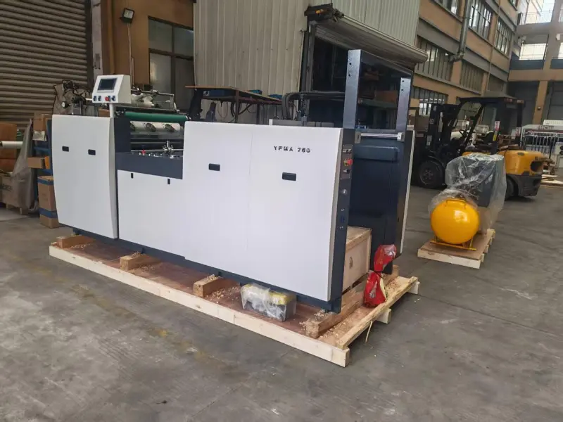 YFMA-760 ontziratzen ari garaAurre-Estaldura Laminatzeko Makina Automatikoa, Azkenik, zurezko kutxa batean ontziratuko da.