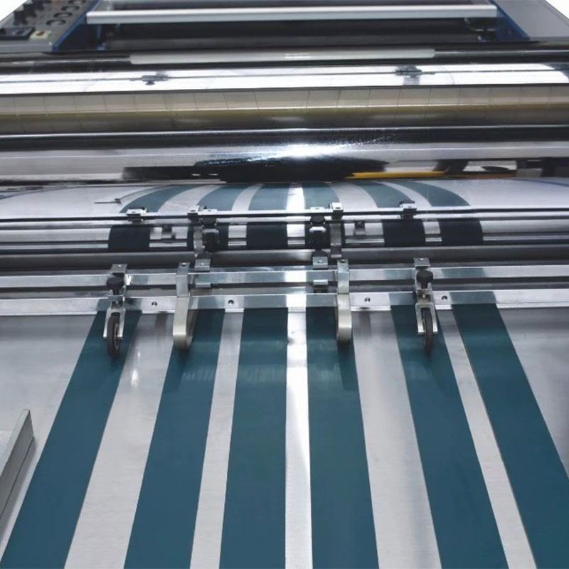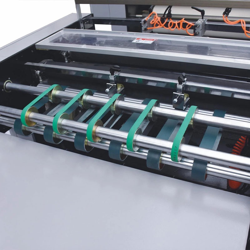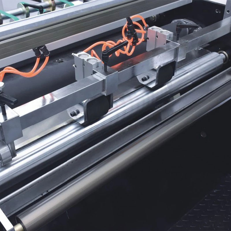 1.Schneider Maiztasun Bihurgailua Infinite abiadura aldakuntzarako hornituta, abiadura doikuntza askoz erosoagoa eta eraginkorragoa ziurtatzen du eta makina modu errazean eta lasaian exekutatzen da. 2. Berokuntza kromatuaren berogailuaren tamaina integratutako olio berokuntza sistemarekin muntatzen da eta horrek tenperatura orekatua eskaintzen du eta tenperatura iraunkorraren iraunkortasuna du. 3.Schneider PLC Systemak paperaren bereizketa automatikoa, auto-babesa eta abar. 4.Pneumatikoki filmak ezusteko sistemaren posizioak zehaztasun handiagoz egiten du eta zinemaren eta filmaren karga eta deskargatzea askoz ere erosoagoa da. 5. Gurpil zulatuen multzo multzoek aukera desberdinak eskaintzen dituzte xaflaren eta filmaren zehaztapen desberdinetarako. 6.Perrekatutako trakzio doitzeko sistema trakzio doikuntza erosoagoa eta eraginkorragoa da. 7. Korrugan entregatzeko sistema eta bibrazio sistemak paperezko bilduma erregular eta erosoago ziurtatzen du.